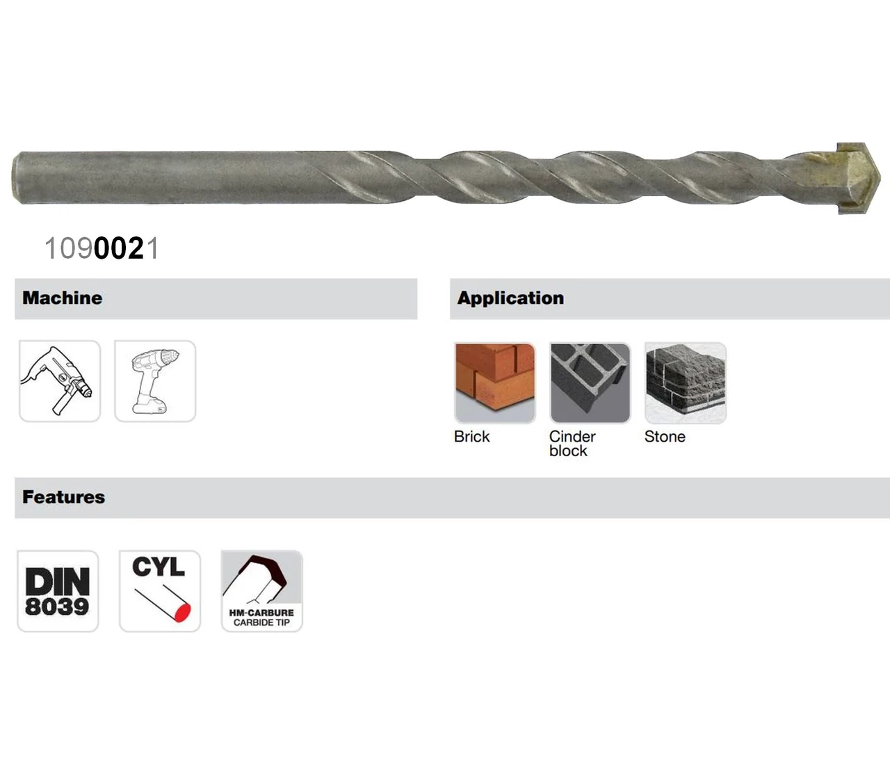 Ø 3-4-5-6-7-8-9-10 mm standard betonfúró keményfém lapkával alkalmankénti használatra.