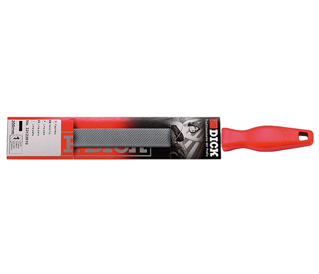 DICK műhelyreszelő 200 mm 2-es vágás, lapos és DICK ráspoly 200 mm, félkerek műanyag nyéllel